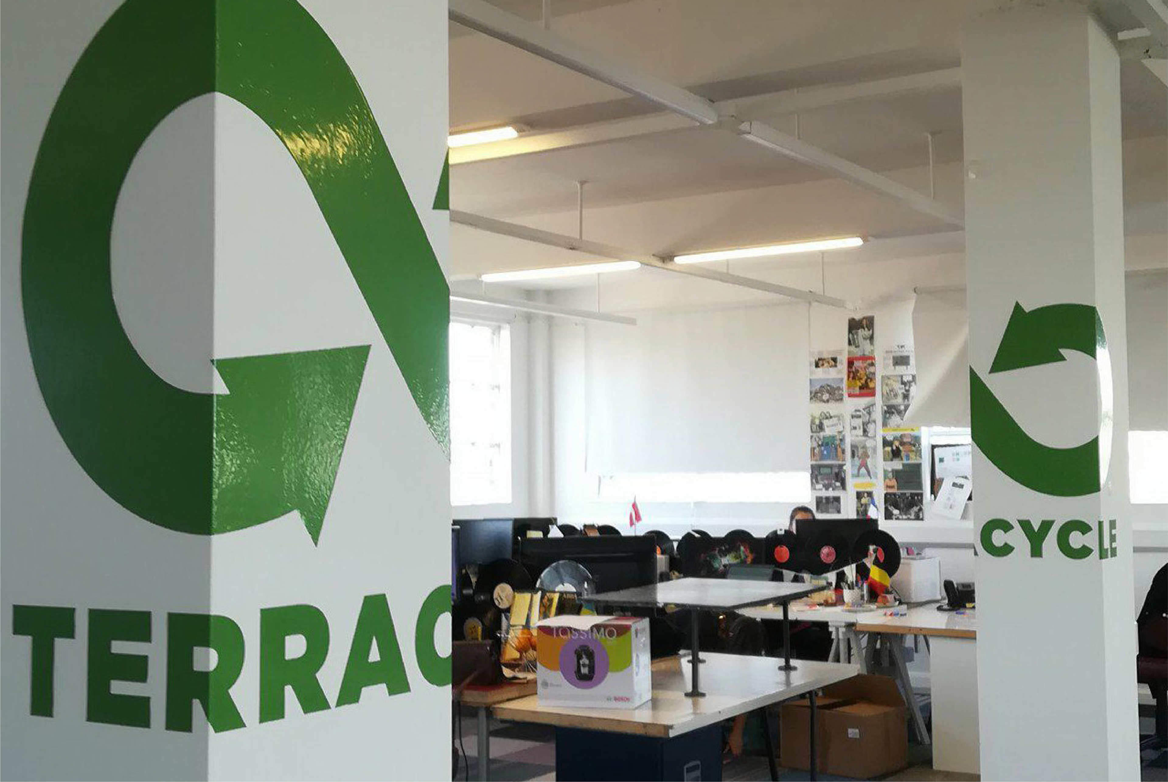 Réaménagement des espaces de travail au sein des bureaux Terracycle de Londres. Animations d'ateliers DIY, signalétique et éco-conception de mobilier.